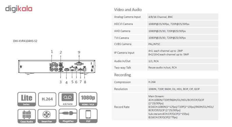 دوربینهای قابل پشتیبانی : HDCVI / AHD / TVI / CVBS / IP