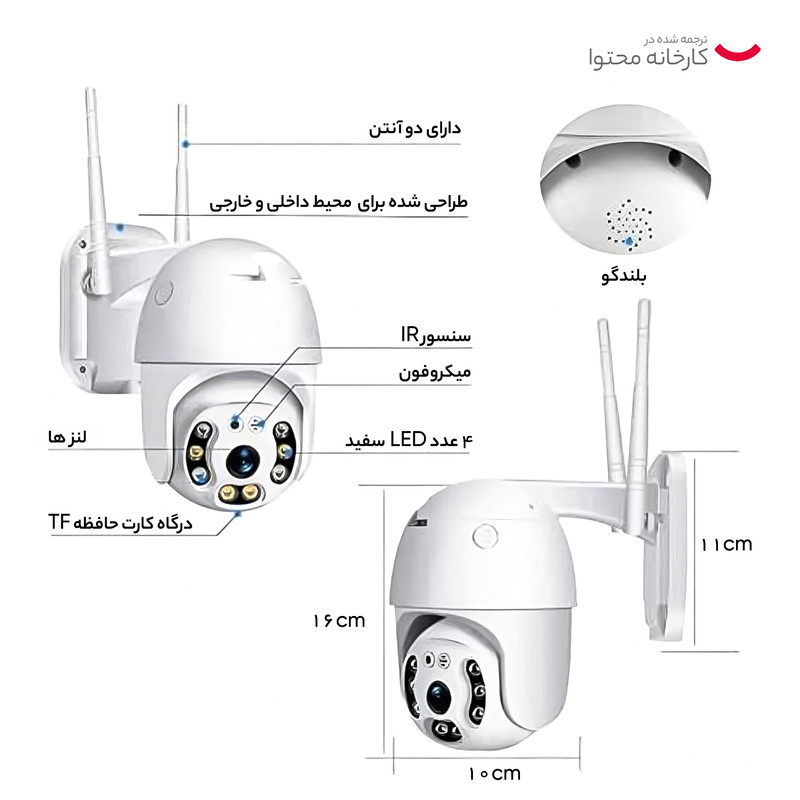 توضیحات قابلیت دید در شب : دارای دید در شب 8 مادون قرمز تا برد 40 متر و همچنین دید در شب رنگی