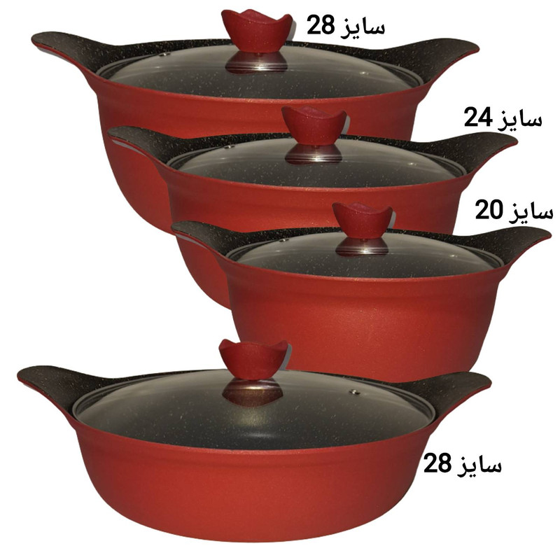 سایر توضیحات : سرویس شامل: تابه سایز 28 قابلمه سایز 28 قابلمه سایز 24 قابلمه سایز 20 قابلمه ها مناسب 3 الی 10 نفره
