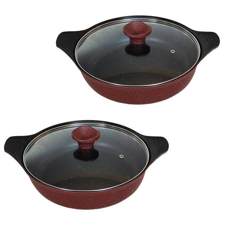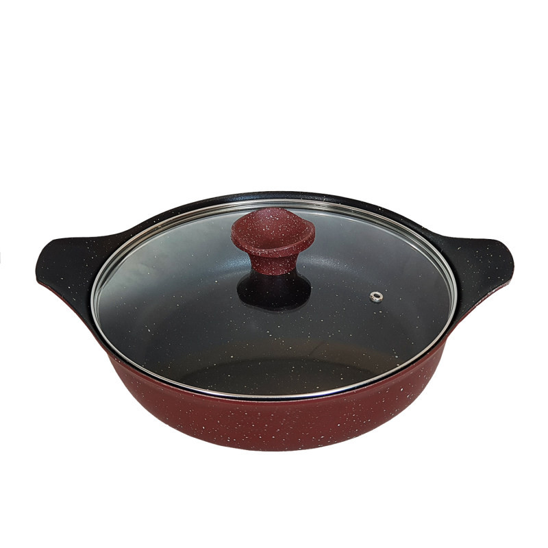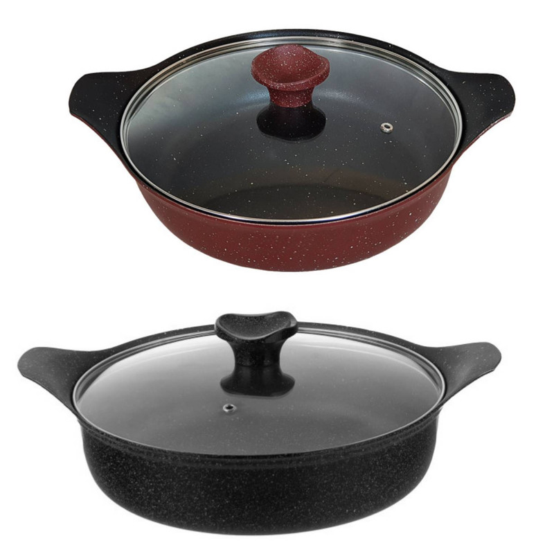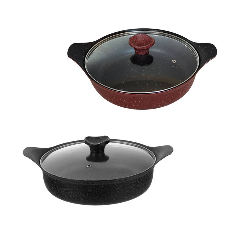 سرویس شامل: 2 عدد تابه سایز 28 درب دار تولید شده از جنس چدن با روکش گرانیتی جنس روکش داخلی نانو تفلون نچسب بدنه مقاوم در برابر تغییر رنگ بر روی شعله ضد خط و خش محکم و مقاوم دسته ها از جنس بدنه طراحی ارگونومیک درب پیرکس مقاوم در برابر ضربه